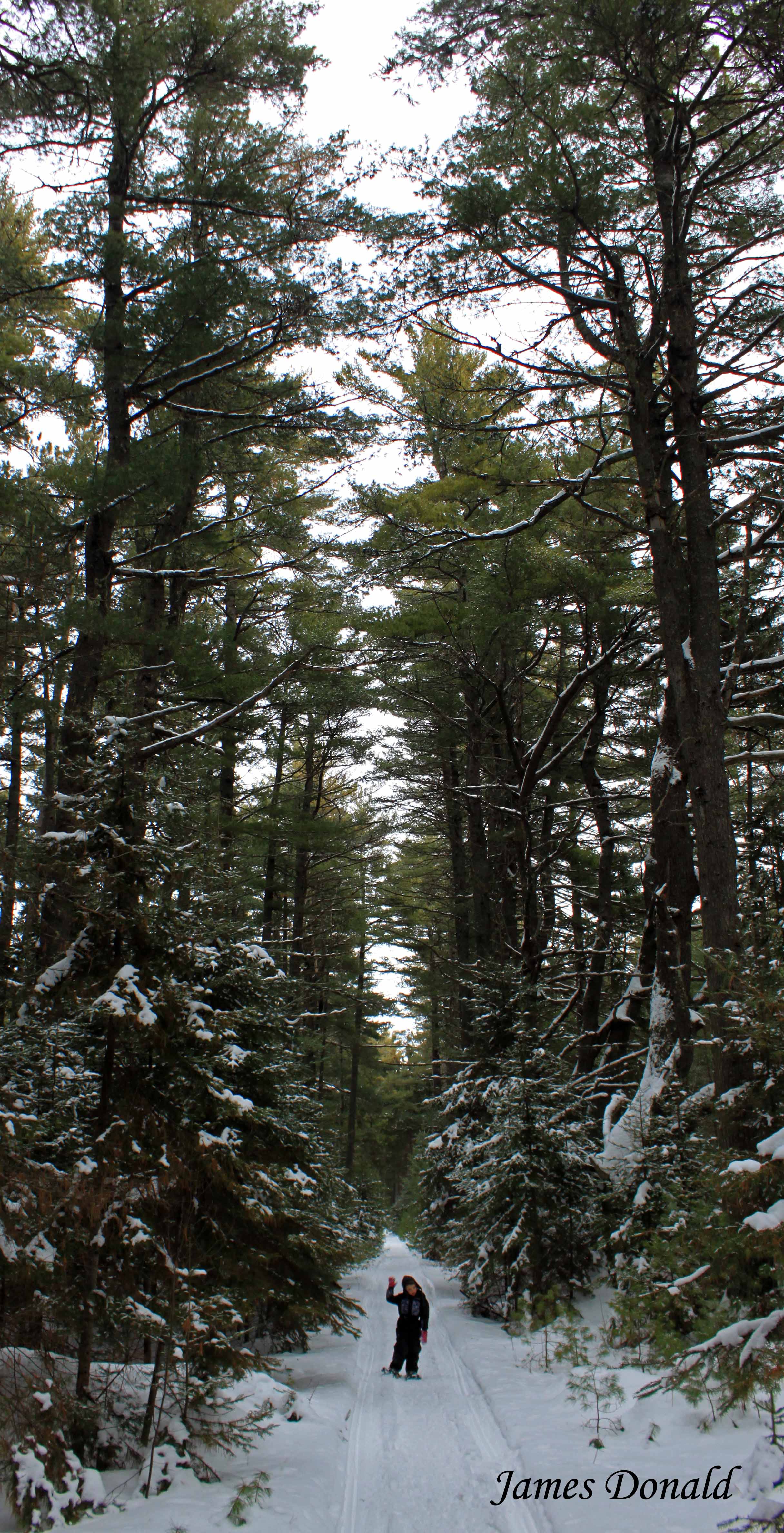 The tall white pine along the main trail on Beaubears Island (Miramichi River Valley Region).